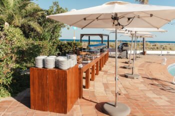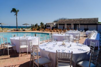 We had our wedding reception for 40 guests at Duna Beach Club. The location is amazing, it’s right on the beach and has fantastic views of the sea, lagos town and algarve coastline. The food was great and the service was impeccable. We were able to walk down to the sea where we had a fun time with our guests. The walk from the car park to the beach club is a surprise as you have to cross railway tracks and the beach club is hidden right up to the entrance. This kept the guests guessing and was a talking point.